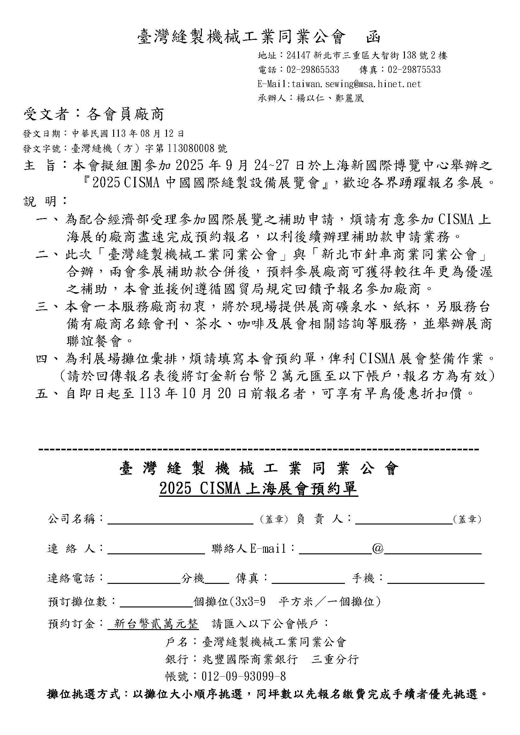 2025年9月24-27日上海CISMA展(中國國際縫製設備展覽會) 敬邀參展!